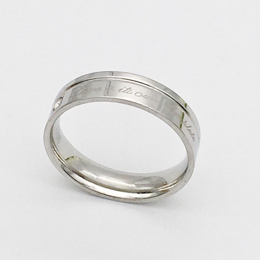 Crafted from durable 316 stainless steel, the SS1364R Love ring #8 features a sleek 5mm width for a modern look. This high-quality material ensures longevity and the perfect fit. The ultimate symbol of love, this ring makes a timeless addition to any collection.
