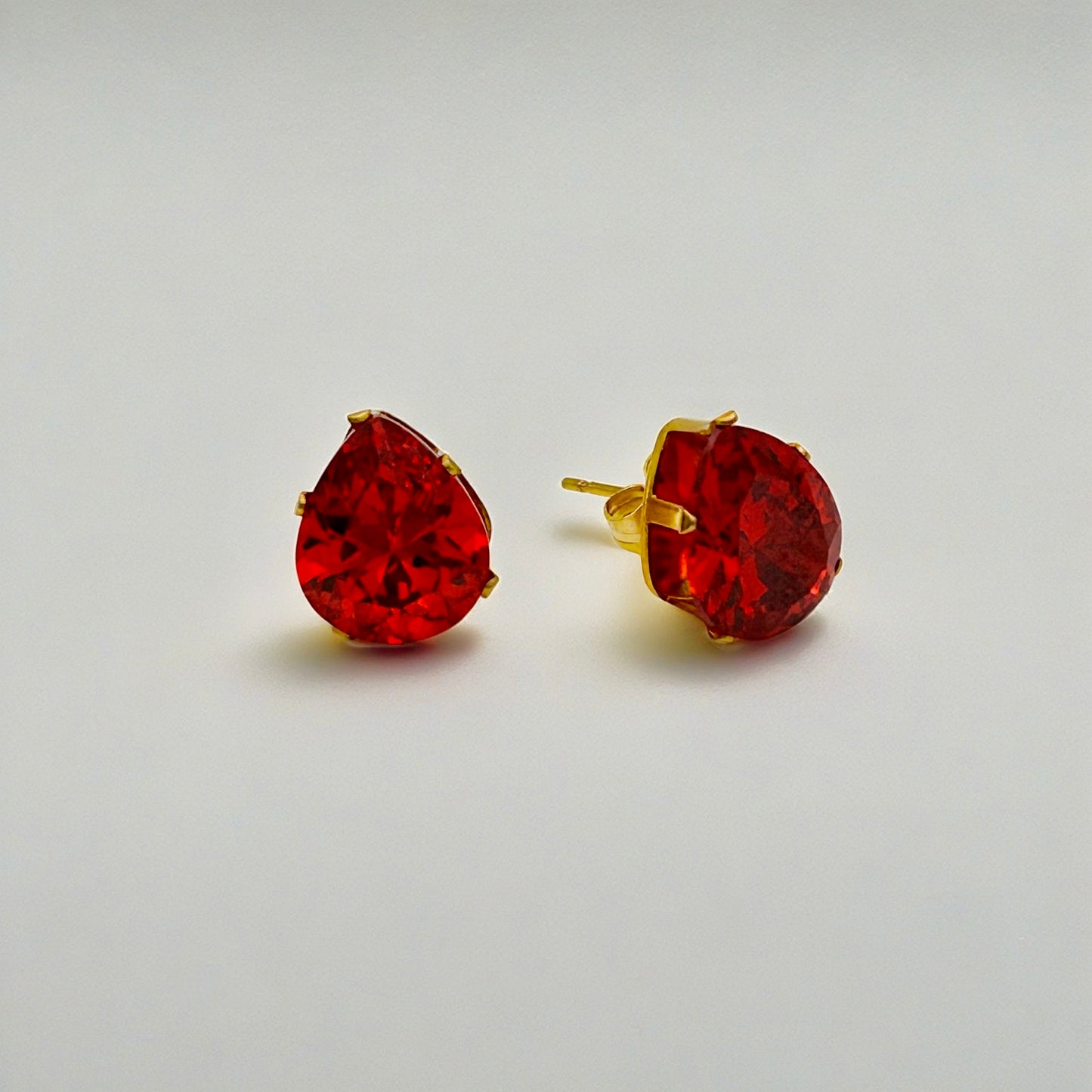 SS950 Gold Plated Red Drop Earrings 13mm. x 10mm.