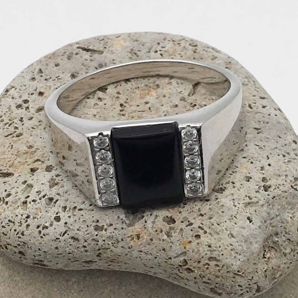 This ST1057 Mens Ring is made of genuine 925 Sterling Silver and onyx, showcasing a sleek and modern design. Wear a piece of timeless elegance with this sophisticated ring that is sure to impress.