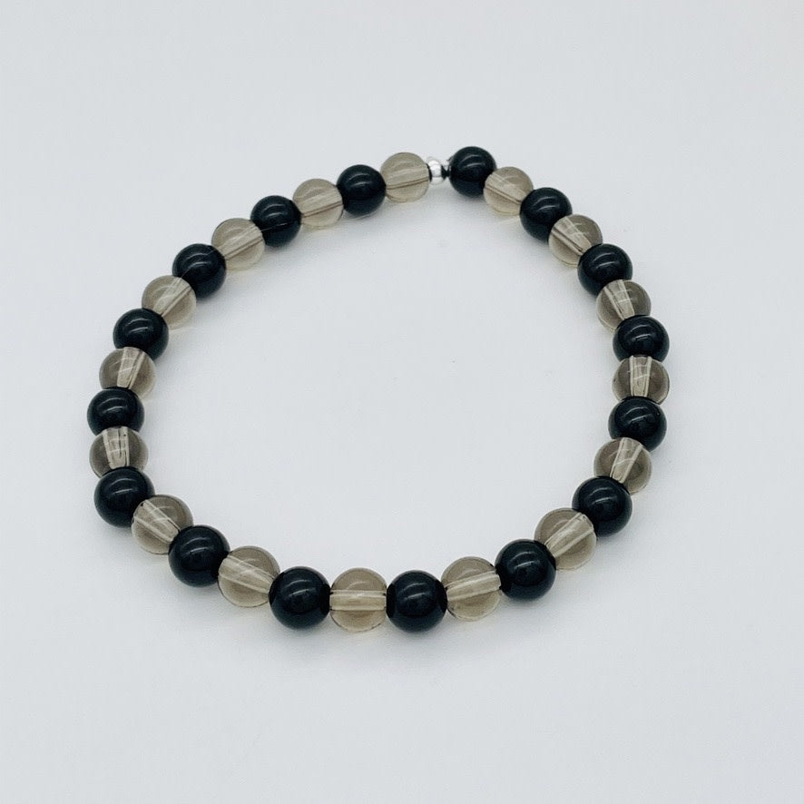 Add a touch of sophistication to your wardrobe with our ST992BL Onyx and Smoky Quartz Bracelet. Crafted from black Onyx and smoky Quartz beads, this 7" bracelet is both elegant and versatile. The perfect accessory to elevate any outfit, it also boasts grounding properties and stress-relieving benefits.