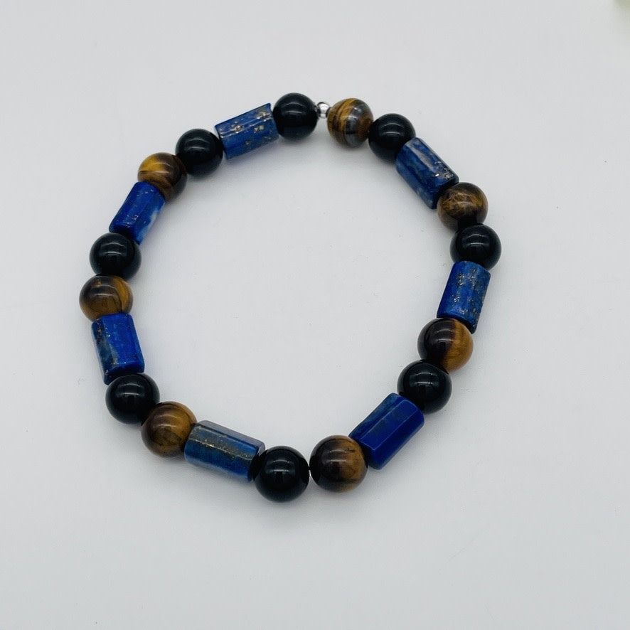 ST1572BL Lapis, Tiger Eye & Onyx 7.5" Final Sale
