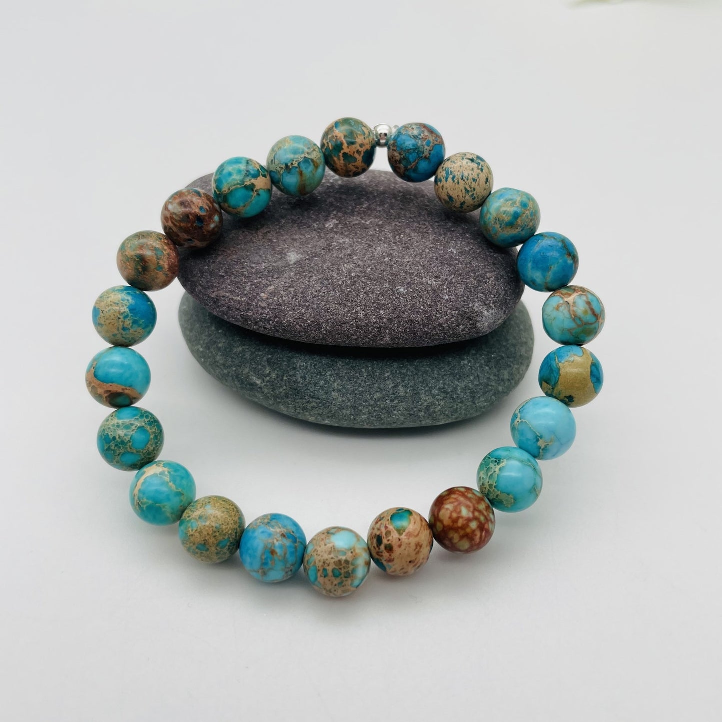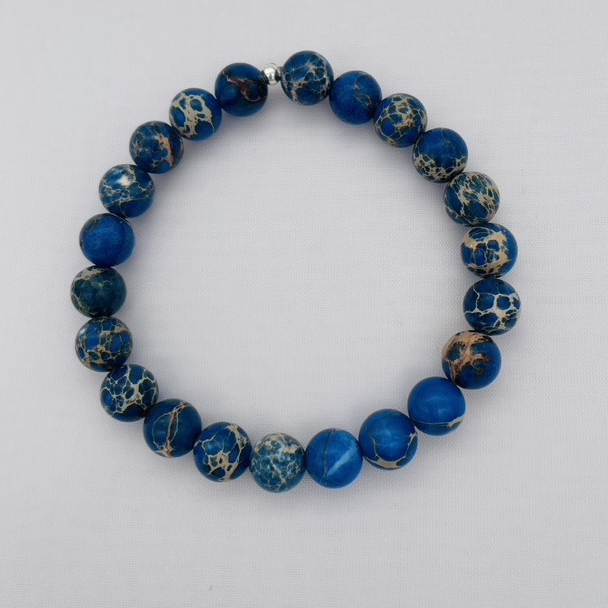 Experience the powerful healing properties of our ST1580BL Blue Jasper Bracelet. Made with natural blue jasper, this bracelet promotes balance, protection, and stress relief. With its stunning blue color and unique patterns, it is not only a beautiful accessory but also a beneficial addition to your daily routine.