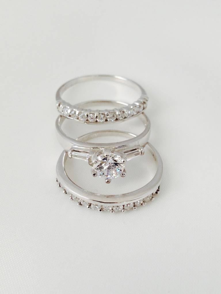 Crafted with elegant genuine 925 sterling silver, this Z255R Wedding Set of 3 Rings boasts stunning CZ accents for a luxurious touch. Perfect for any wedding or special occasion, these rings offer both beauty and durability for a timeless addition to any jewelry collection.