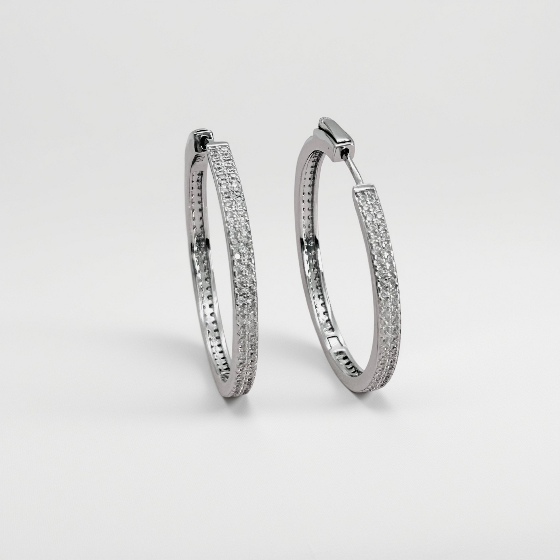 Crafted from high-quality .925 sterling silver, the Z1240 Hoop Earrings feature a 35mm diameter adorned with sparkling cubic zirconia accents. These earrings combine durability with elegant brilliance, making them a refined choice for both everyday wear and special occasions. Their expert design ensures comfort and lasting shine, highlighting your style with timeless sophistication.