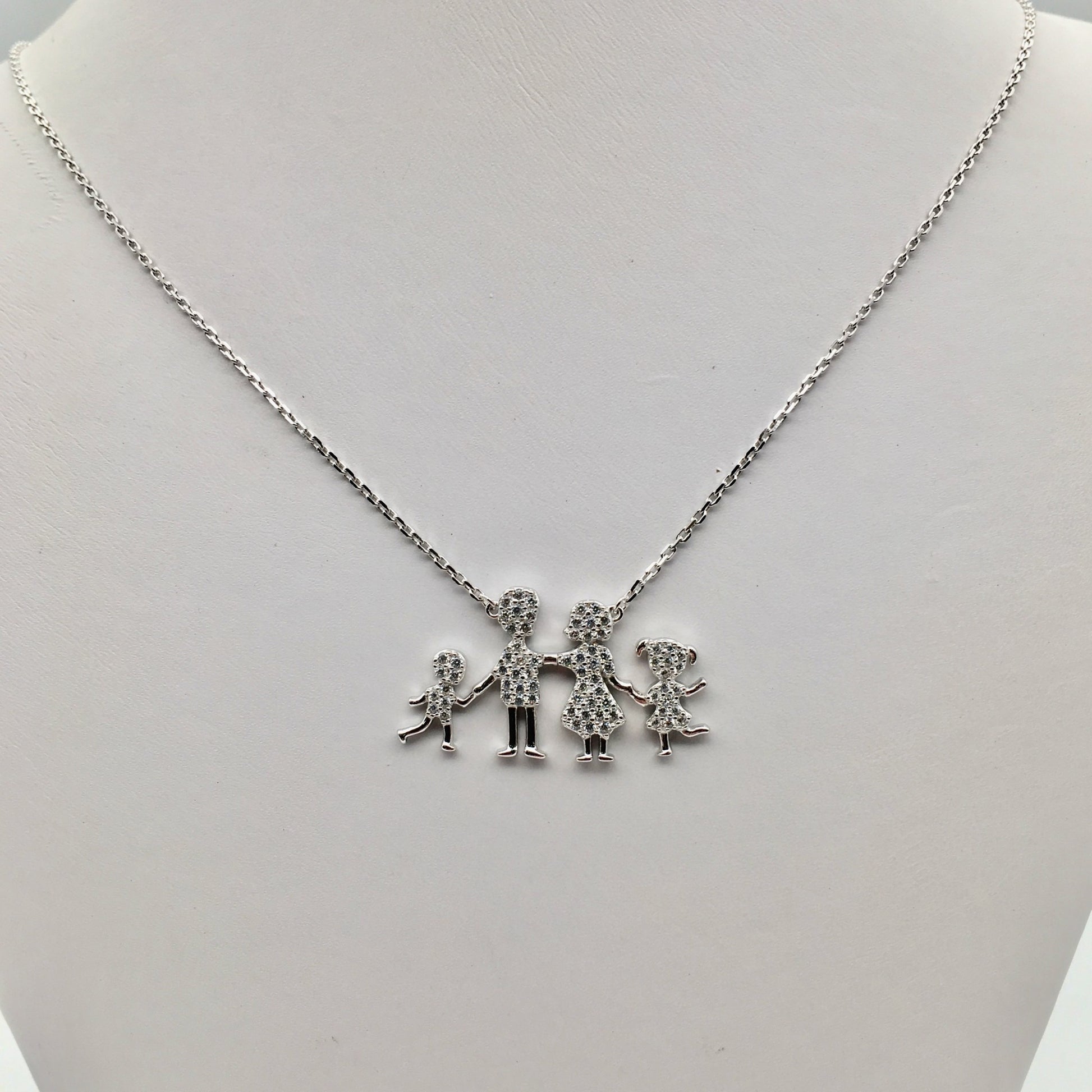 This stunning Z1248 Family Necklace features a charming boy and girl design crafted from genuine 925 sterling silver and sparkling cubic zirconia. Perfect for celebrating the bond between siblings, this necklace is a timeless piece that will add sentimental value to any outfit. Made with high-quality materials, this necklace is a durable and elegant accessory for any occasion.