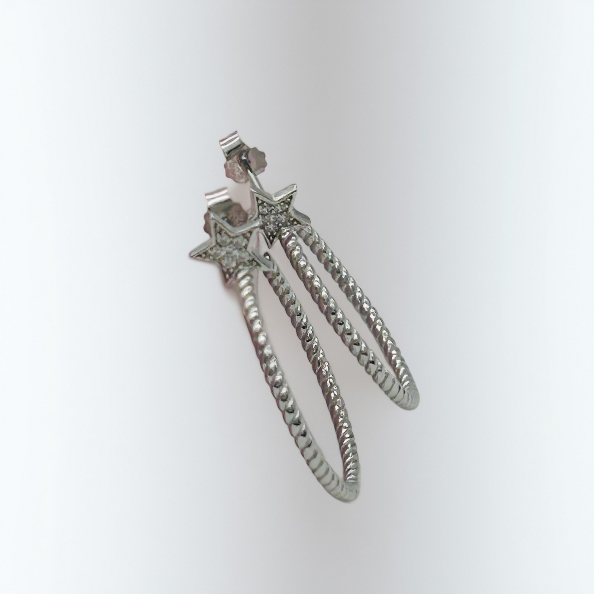 Crafted from .925 sterling silver, the Z1249 Star Hoop Earrings feature sparkling cubic zirconia stones that deliver brilliance and durability. Their refined design combines timeless elegance with expert craftsmanship, offering a sophisticated accessory suitable for both everyday wear and special occasions. These earrings provide a hypoallergenic and long-lasting option, ensuring comfort and style for discerning customers.