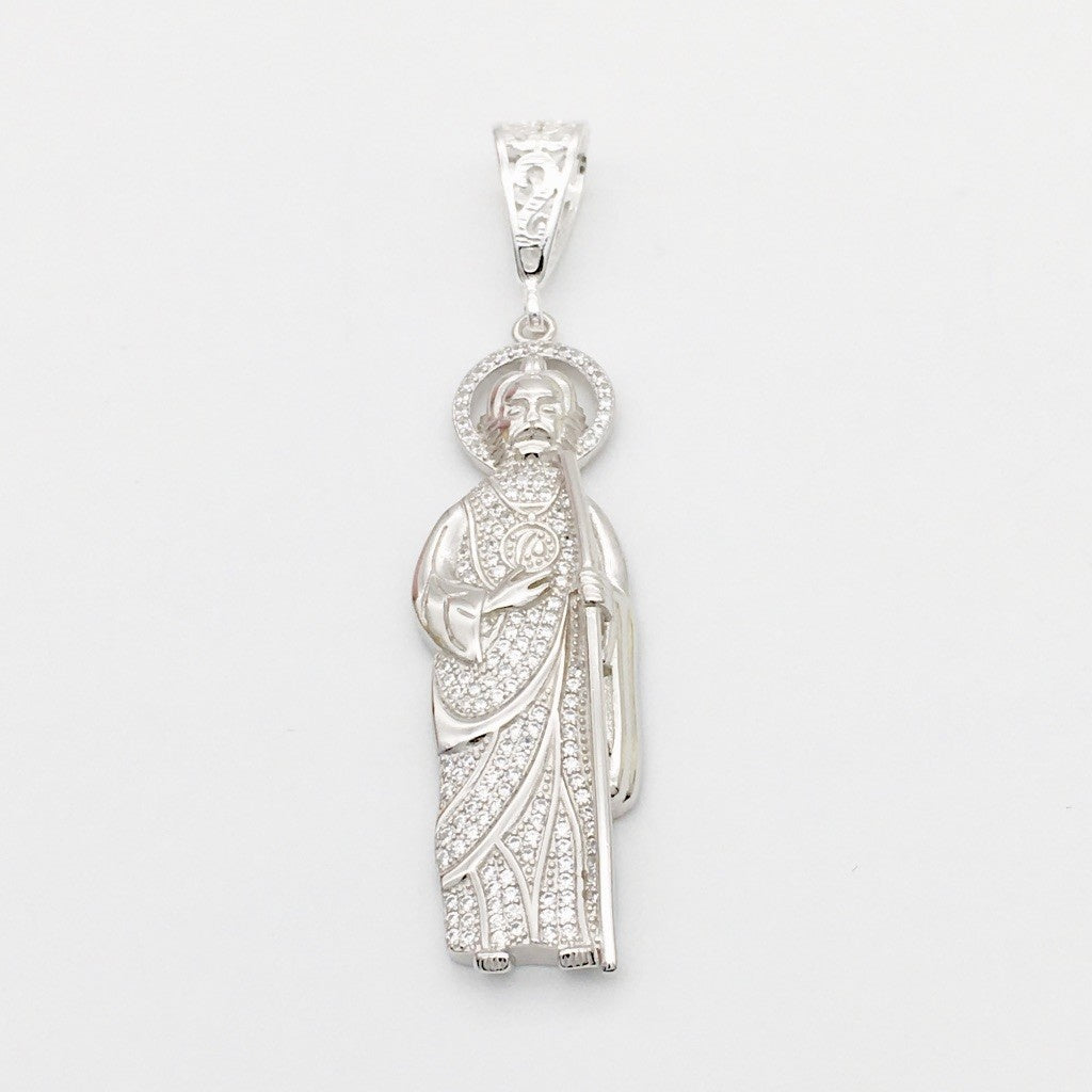 Expertly crafted from 925 sterling silver and embellished with sparkling cubic zirconia, the Z1308P Saint Jude Pendant is a stunning accessory perfect for any occasion. Measuring at 72mm in length, this pendant is sure to make a statement and elevate any outfit to the next level.