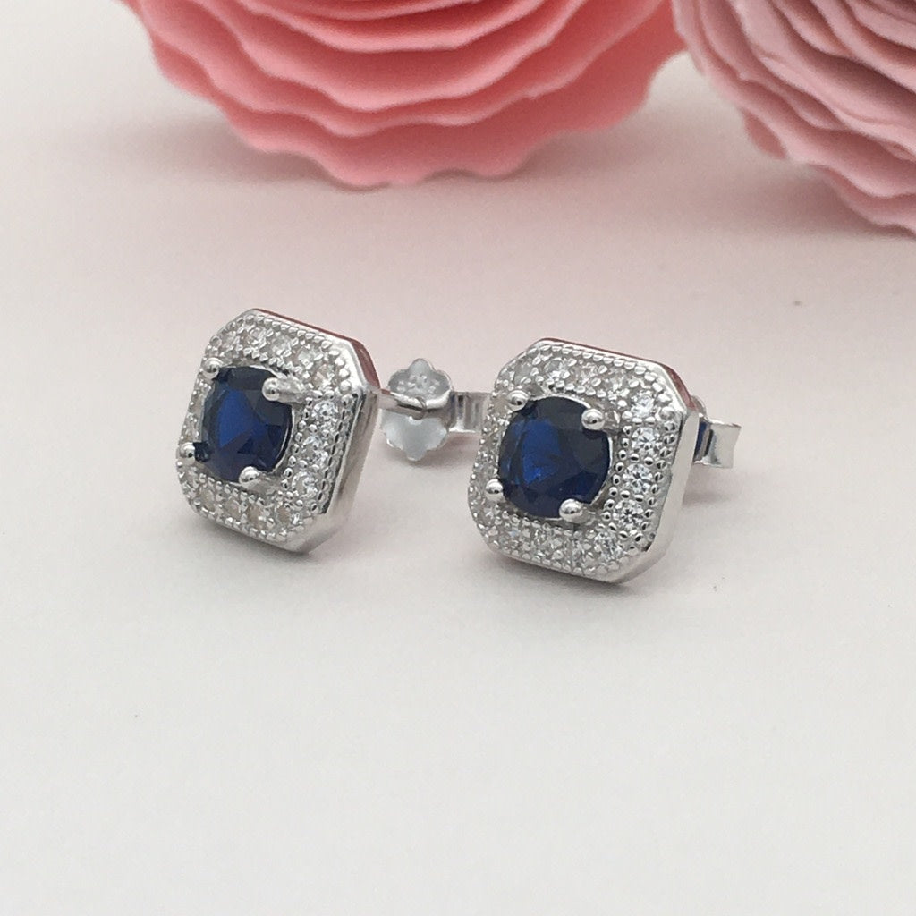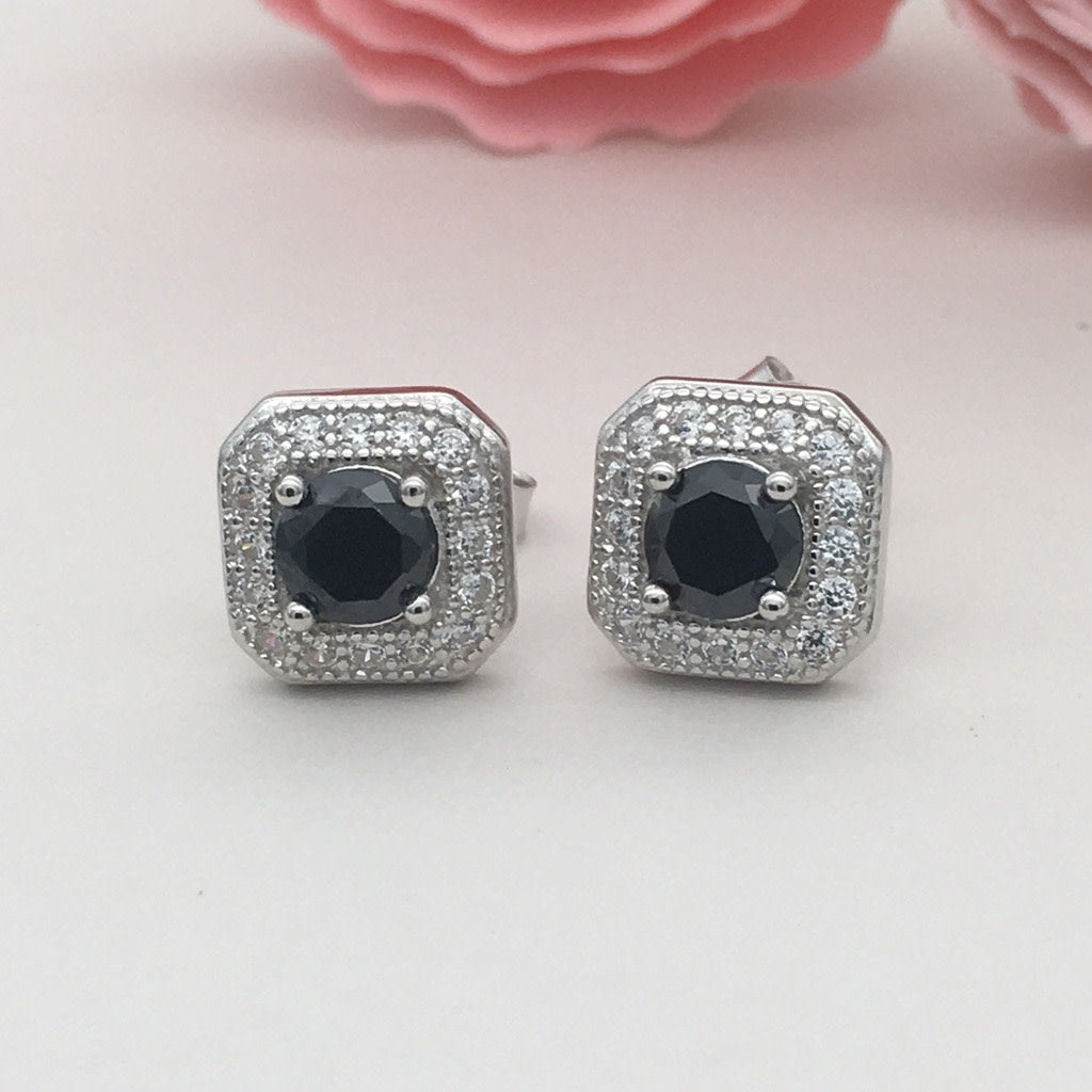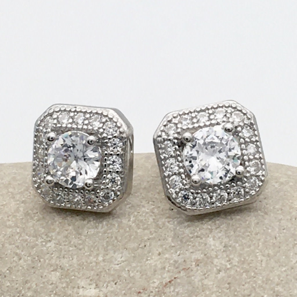 These square earrings are made of genuine 925 sterling silver and feature sparkling cubic zirconia stones. Each earring measures 9mm x 9mm, making them a perfect size for everyday wear. Add a touch of elegance to any outfit with these high-quality earrings.