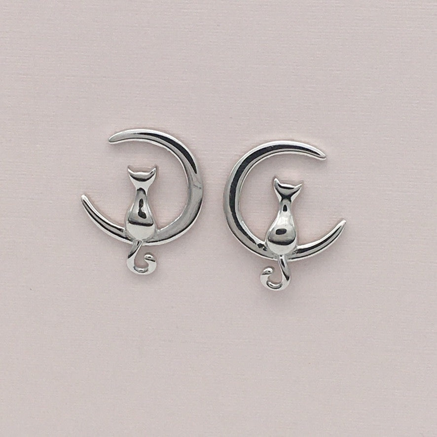 Crafted with expert precision, our S1576ER Cat In Moon Earrings are made of high-quality rhodium plated 925 sterling silver. This durable material not only gives the earrings a sleek and elegant appearance but also ensures long-lasting shine and durability. A perfect addition to your jewelry collection.