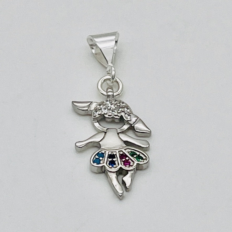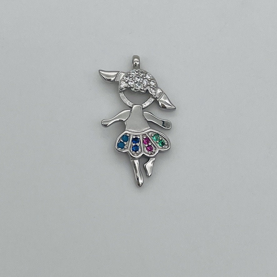 This girl pendant is made of genuine 925 sterling silver and sparkling cubic zirconia stones. Crafted with top-quality materials, this pendant adds a touch of elegance to any outfit. Its genuine silver and dazzling stones make it a valuable addition to any jewelry collection.