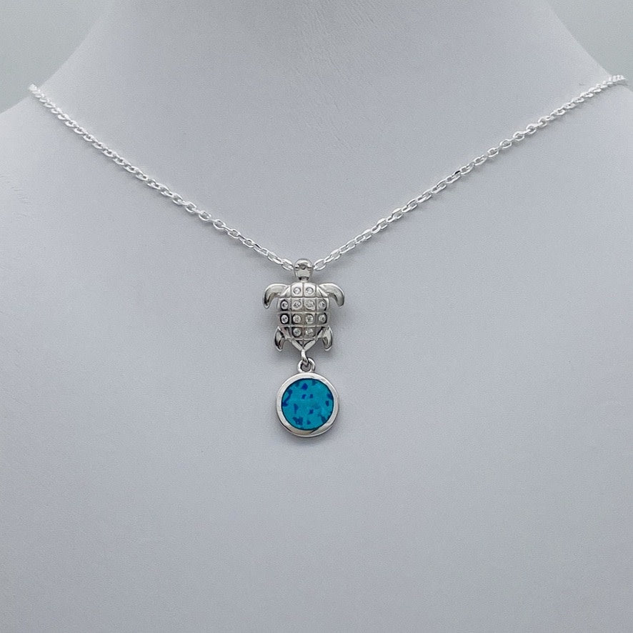 This Z1550NL Blue Opal Turtle Necklace is expertly crafted from genuine 925 Sterling Silver, with dazzling Cubic Zirconia and Lab Created Opal. Add a touch of elegance and sophistication to any outfit with this beautiful and timeless piece of jewelry. Perfect for both casual and formal occasions.