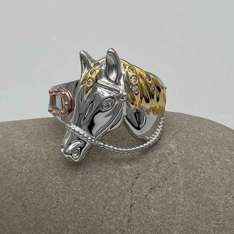 Crafted from genuine 915 sterling silver and sparkling cubic zirconia, the Z1563R Horse Man's Ring exudes elegance and charm. Durable and luxurious, this ring is perfect for any horse lover.